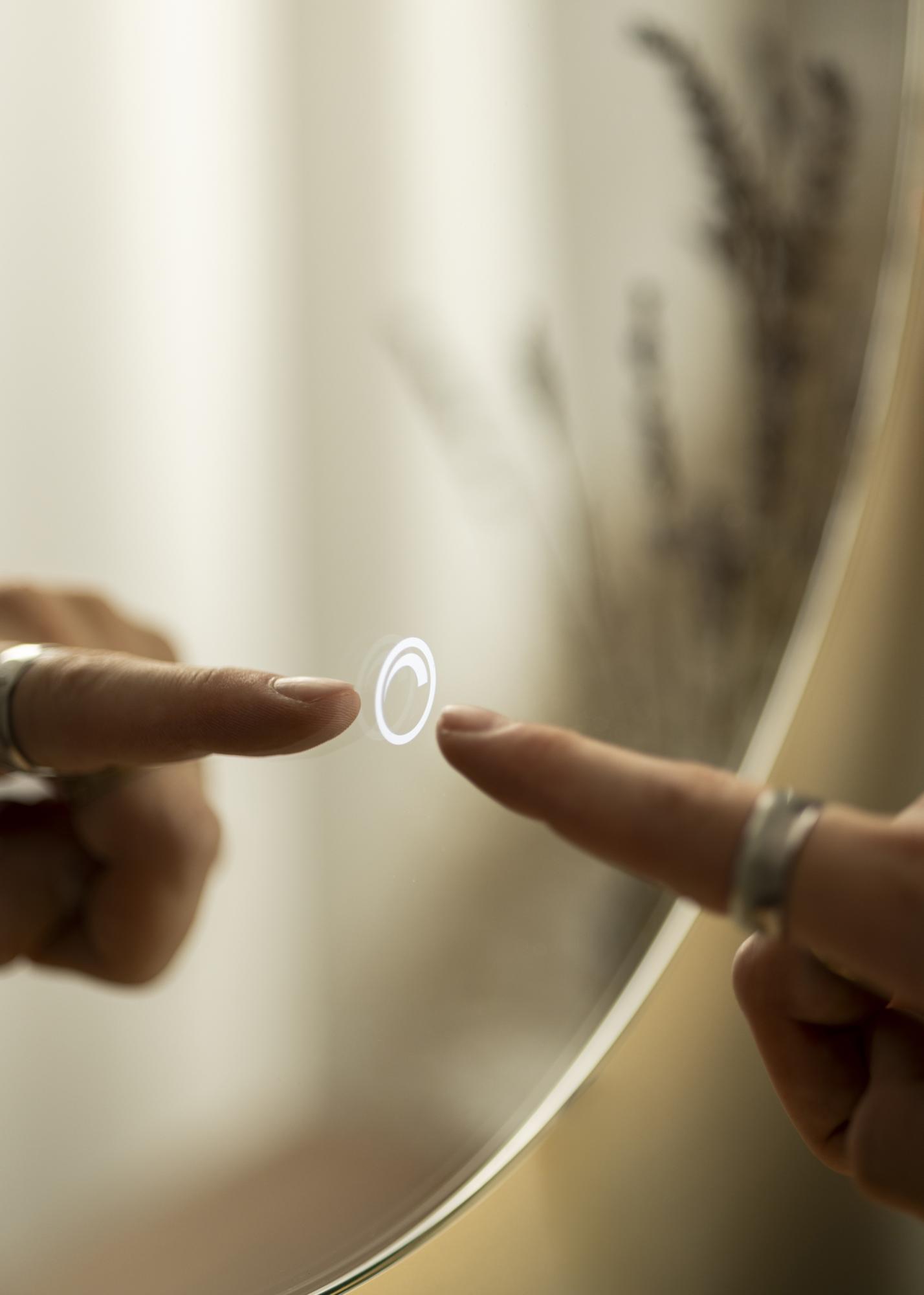 Klassischer Badezimmerspiegel rund in schwedischem Design von KAILA. Dieser Spiegel mit Licht ist perfekt für moderne Badezimmer. Dieser Badspiegel ist mit integrierter LED-Beleuchtung ausgestattet, die den Spiegel dekorativ von hinten beleuchtet und mit einem einen angenehm warmweißen Schein, Lichtfarbe 3000 K, nach vorne strahlt. Die LED-Beleuchtung ist dimmbar und kann einfach durch Gedrückthalten des Touch-Sensors für einige Sekunden lang eingestellt werden. Die LED-Technologie ist eine energieschonendere Lichtquelle und steht für ein gleichmäßiges, natürliches Licht.