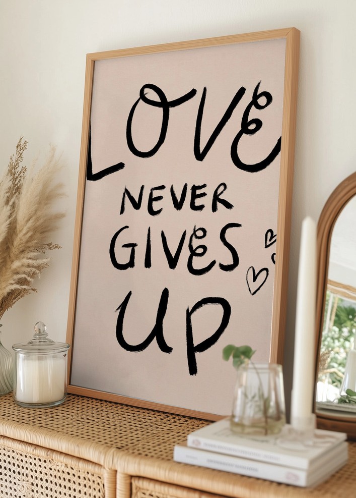 Love Never Gives Up Typography Poster