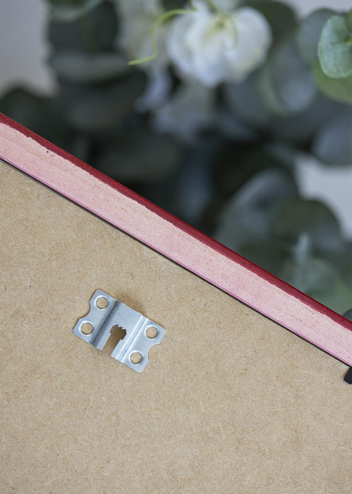 Der Bilderrahmen ist aus Holz gefertigt und hat eine Rahmenleiste, die 23 mm breit und 13 mm tief ist. Das sorgt für ein stabiles und robustes Gefühl, während die elegante Ausstrahlung erhalten bleibt. Der Rahmen ist auf der Rückseite mit Metallaufhängern ausgestattet, sodass du ihn ganz einfach sowohl horizontal als auch vertikal aufhängen kannst – je nachdem, was am besten zu deinem Motiv passt.