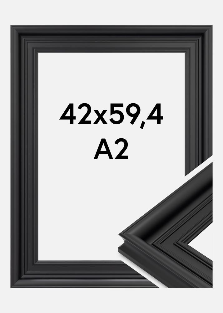 Dieser stilvolle Bilderrahmen in Schwarz ist perfekt, um deine Lieblingsmotive im Format 42x59.4 cm (A2) hervorzuheben. Mit einer breiten Rahmenleiste von 80 mm und einer Tiefe von 45 mm sorgt er für eine kraftvolle Umrahmung, die das Bild richtig zur Geltung bringt. Die matte schwarze Oberfläche schafft einen grafischen Kontrast zur Wand und lässt das Motiv präsenter und lebendiger wirken.